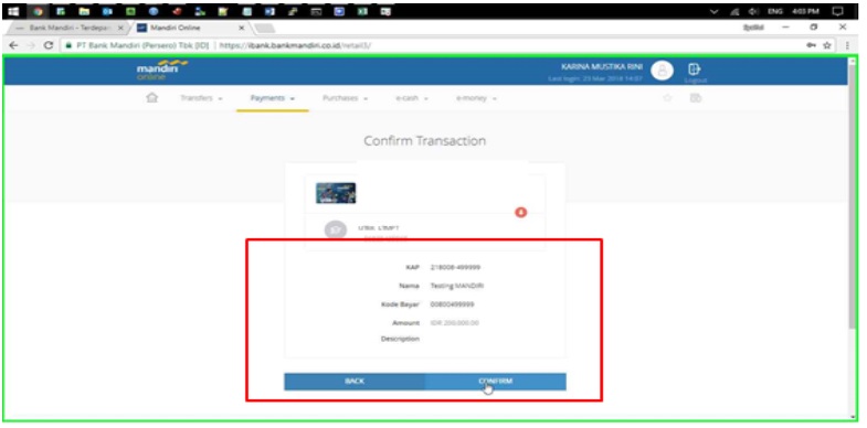 Pembayaran UTBK LTMPT di Bank Mandiri